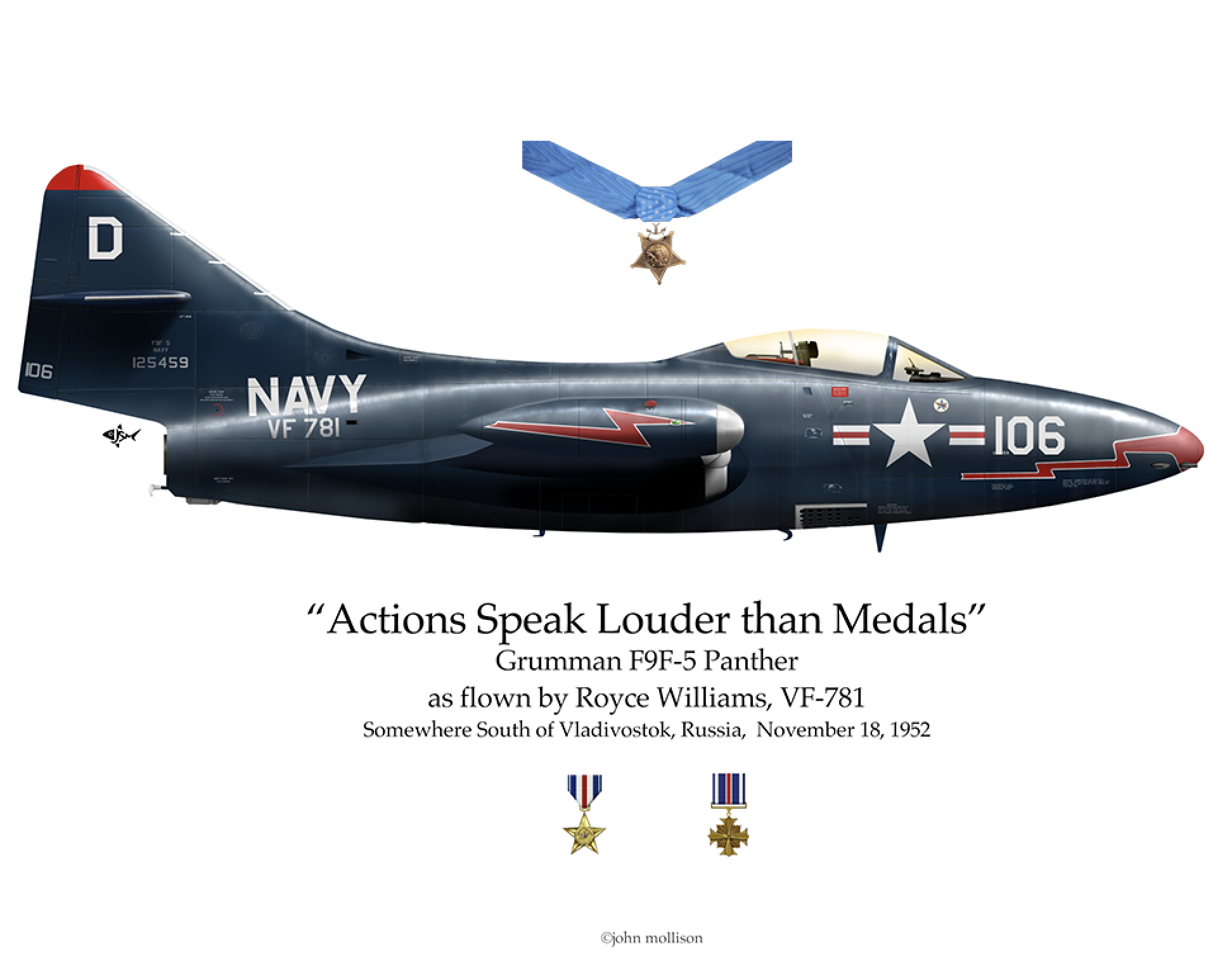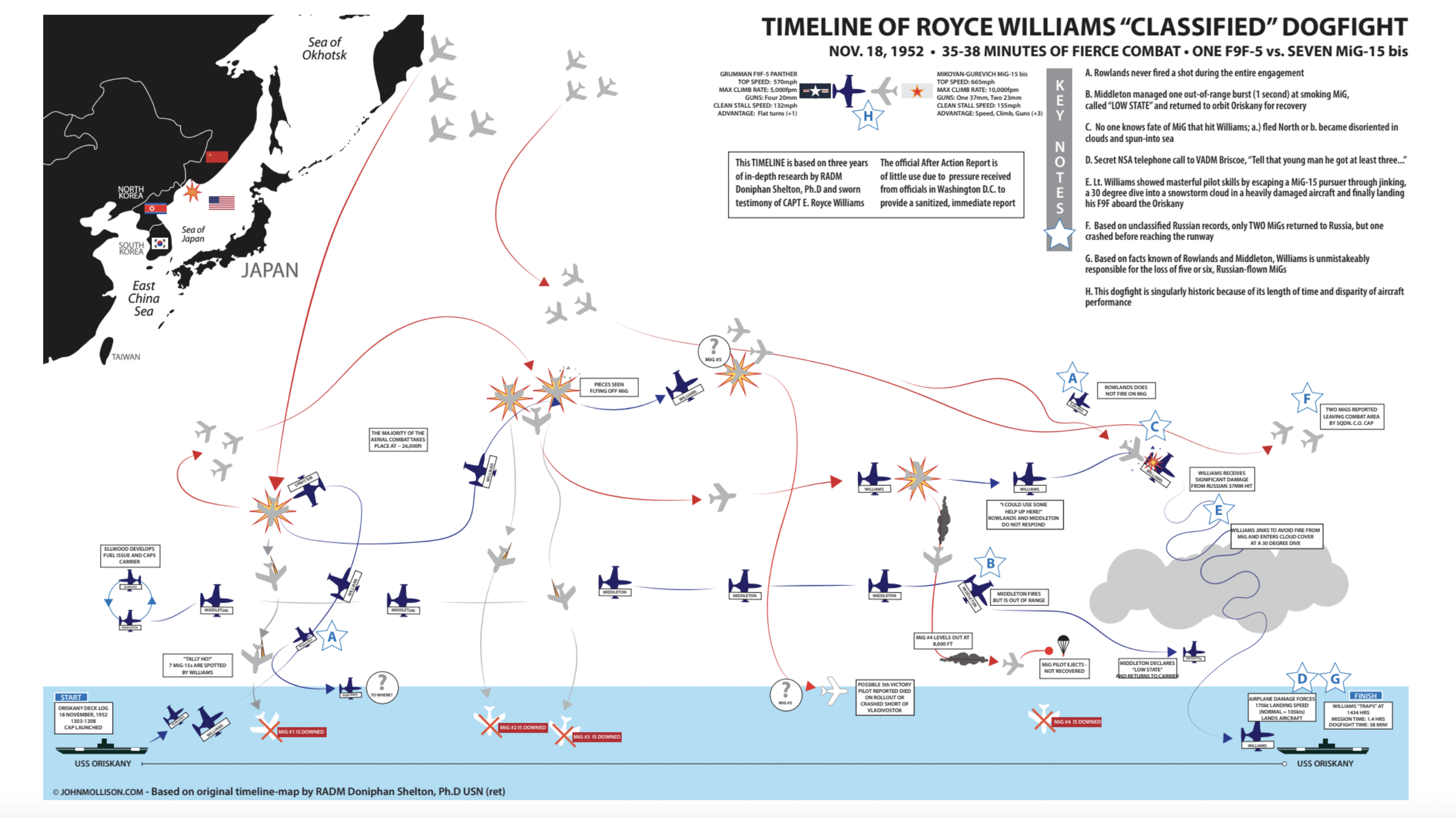 On November 18, 1952, just south of Vladivostok, U.S.S.R., a single American Navy pilot, Royce Williams, engaged in a historic dogfight against seven superior Soviet fighters and shot down at least four of them.